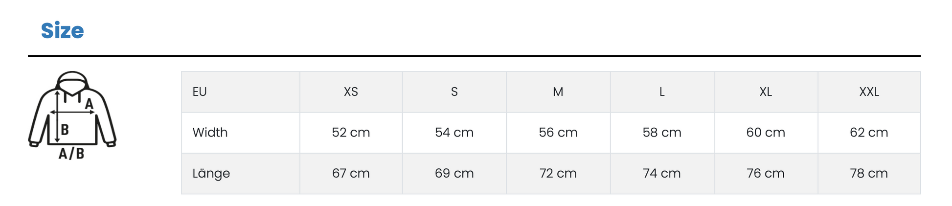 - Größen: S-XXL, Übergröße auf Anfrage